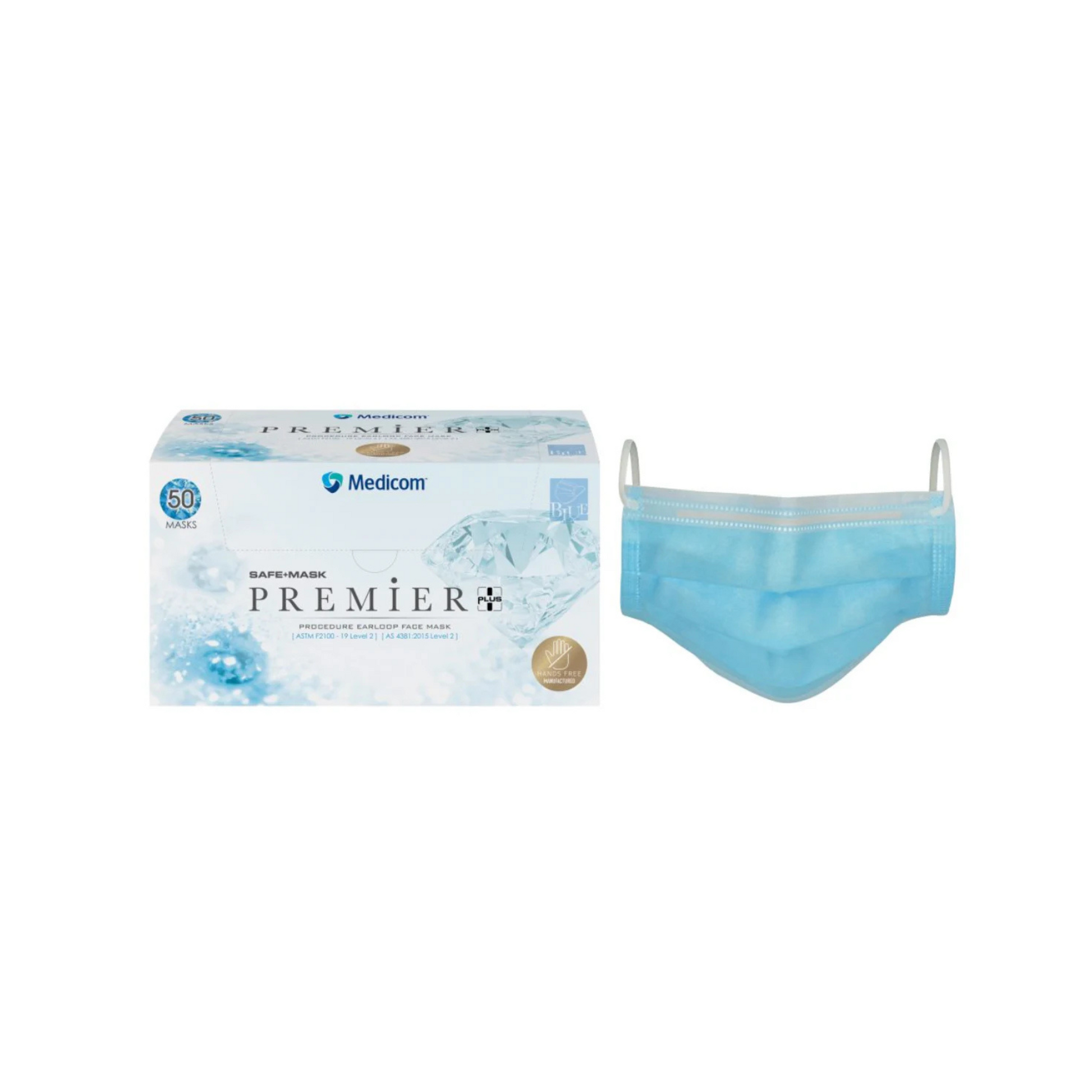 Medicom Safe Mask PremierPlus Procedure Earloop Face Mask Blue - CTN of 500pcs